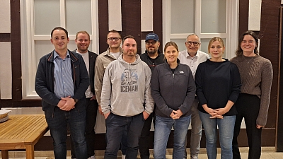 Verabschiedung vom ehemaligen 1. Vorsitzenden Peter Otte (3 v. links) sowie zugleich neuer geschäftsführender Hauptvorstand v.l.n.r. Pascal Schrameyer (Kassierer), Rolf Benglan (2. Vorsitzender), Peter Otte (ausgeschieden), Jürgen Ahlers (neuer 1. Vorsitzender), Patrick Nagelmann (Geschäftsführer)