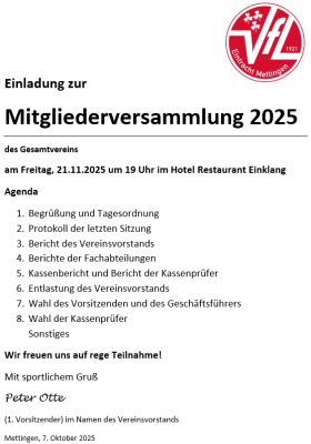 Einladung zur Mitgliederversammlung 2025